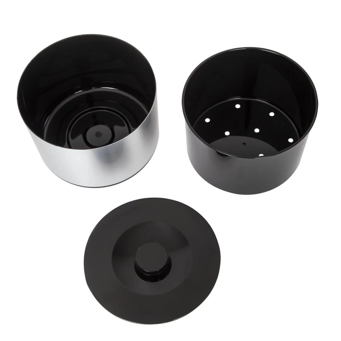 The ice bucket features a double-wall construction and removable lid, that help to improve insulation and keep ice cold for longer.