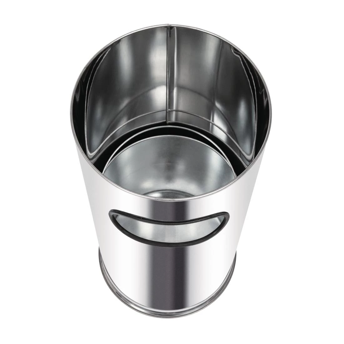 Featuring a removable ashtray and strong, 18/0 stainless steel construction, the 35 litre Bolero cigarette bin is ideally suited for use in busy smoking areas at cafes, hotels, restaurants, clubs and more. The attractive design keeps smoking areas looking stylish whilst the reliable and hardwearing construction means the cigarette butt bin can withstand busy use.