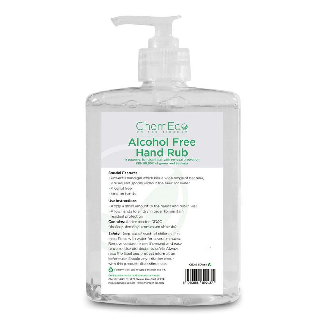 Give hygiene the attention that it deserves, with this unperfumed hand sanitiser from ChemEco. This 500ml hand sanitiser uses an antimicrobial active ingredient that makes it effective against gram-positive and gram-negative bacteria, yeasts and enveloped viruses – making it ideal for keeping hands clean within your food preparation areas.