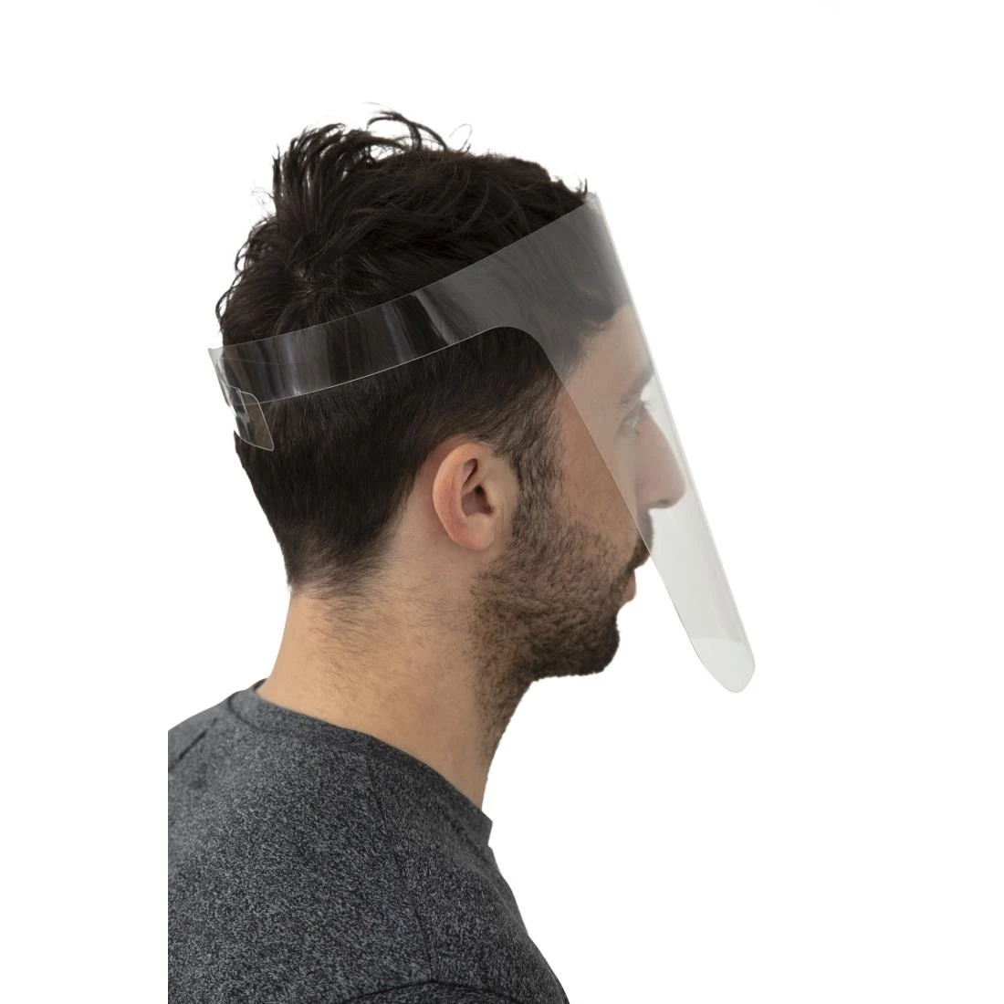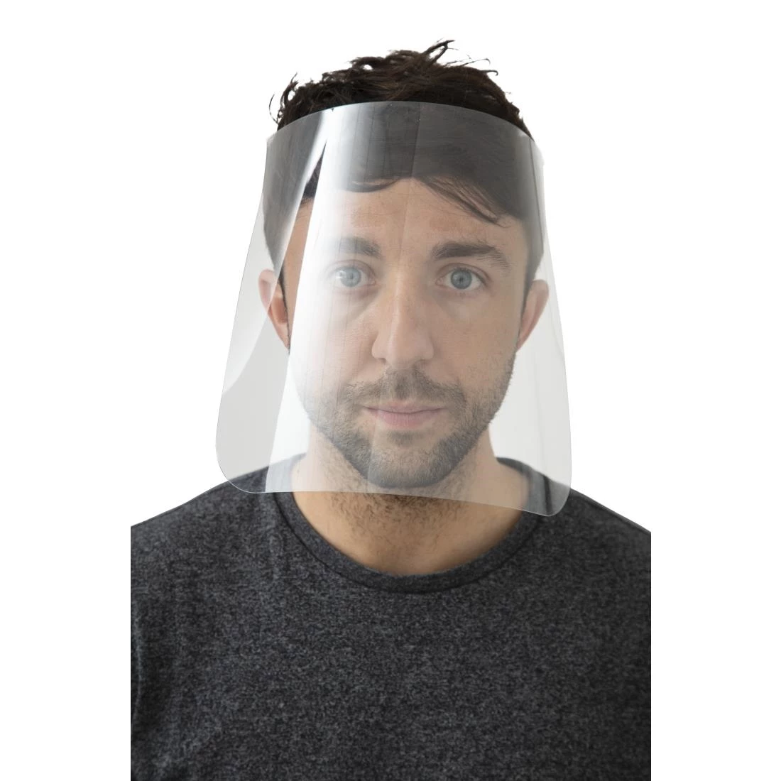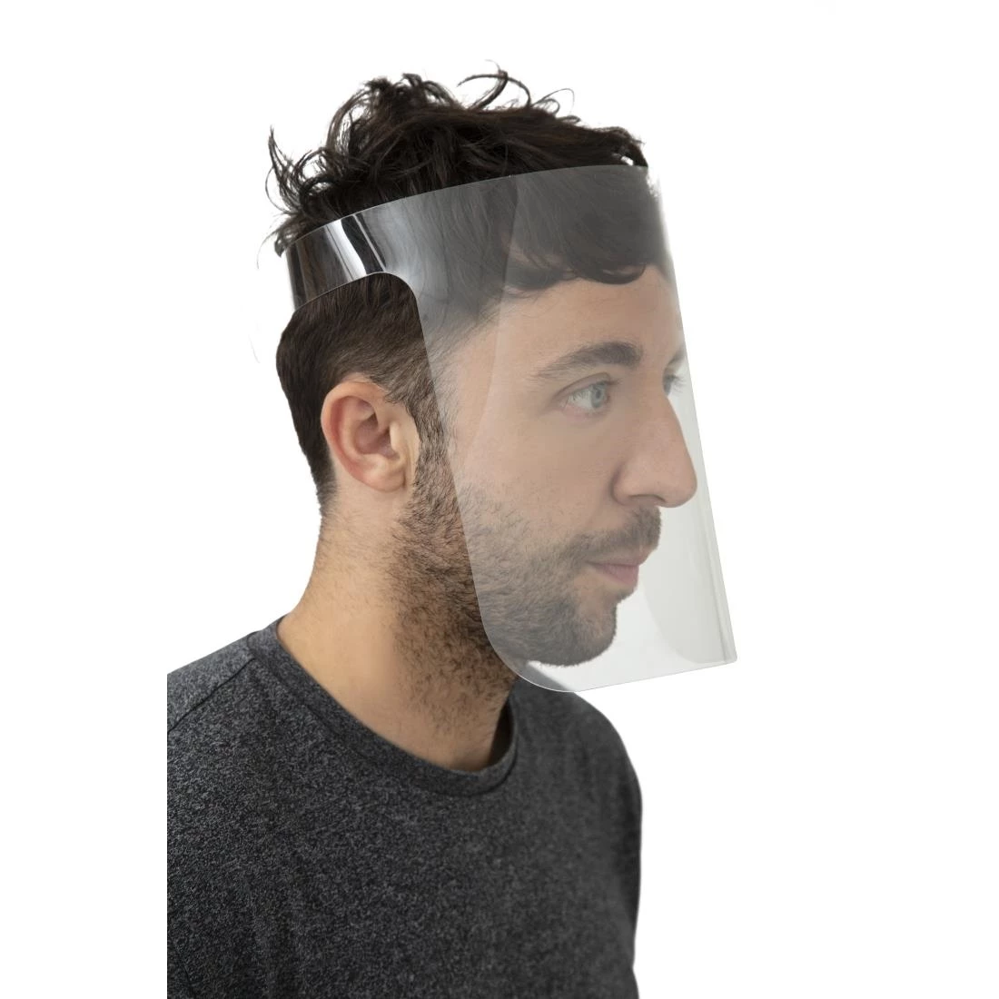 These plastic face visors provide an effective barrier against smaller particles projected by a cough or a sneeze, and can be adjusted to nine different comfort fit options.