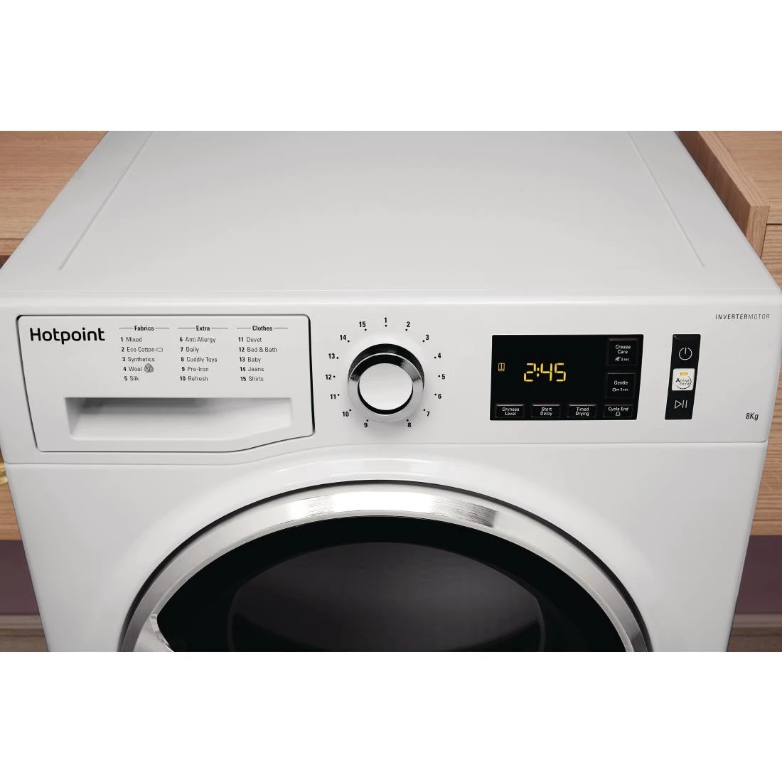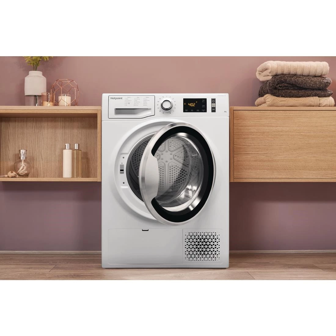 Looking to rapidly dry your laundry, without damaging fabrics? Then the Hotpoint ActiveCare NT M11 82XB tumble dryer is exactly what you need. Designed with HotPoint’s innovate Heat Pump Technology, the tumble dryer collects moisture from your clothes, and then recycles it back into the heating element. This intelligent design means that the tumble dryer doesn’t need to get as hot to dry your clothes, giving it an A++ Energy Rating – cutting your energy bills in the long run, whilst being kinder to the environment.