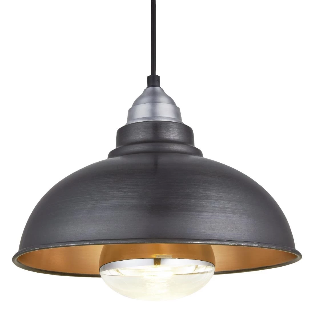 Dusky pewter meets sleek brass in the stylish 12″ Old Factory Pendant from Industville. Designed to bring a dash of industrial charm to any interior, this sleek, stylish fitting taps in to the trend’s raw, metallic feel to give any tired front-of-house space a modern, clean feel. The retro-inspired shape of the shade adds a touch of 1920s prohibition-era charm, making it perfect for ambience-oozing cocktail bars and retro-edged cafes and restaurants, while helping to direct light downward into pleasing pools. Hang above a dining table to bring your dishes into the spotlight – literally – or place near a cosy seating booth to top it off with that all important ambience. Finished with a flex cord that allows you to hang your fixture at whatever height you please. The perfect fitting for any venue as serious about its interiors as it is its menu.