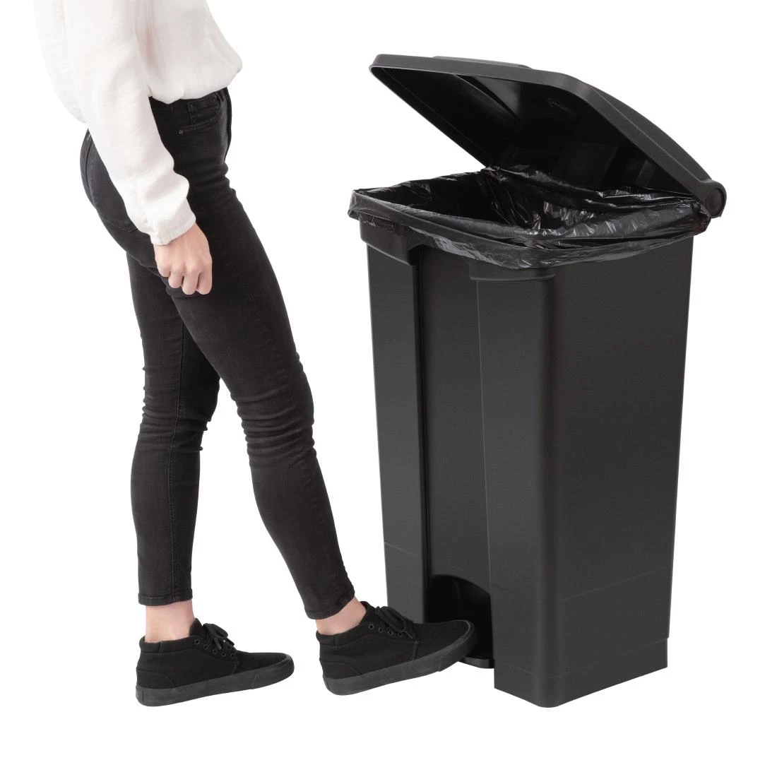 Guarantee hygienic waste disposal in your kitchen or washroom with this 87Ltr black Jantex pedal bin. This bin’s pedal mechanism is designed to ensure a hands-free operation. By eliminating the need for hand contact, the bin stops the spread of contamination and harmful microbes to keep all in your premises safe.