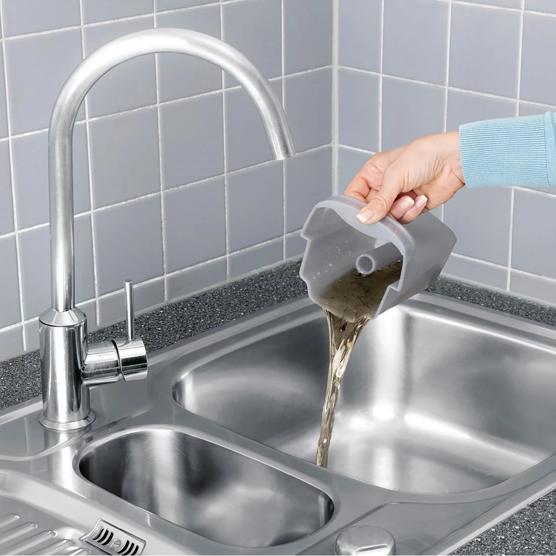 - Hygienic twin tank system only washes with clean water