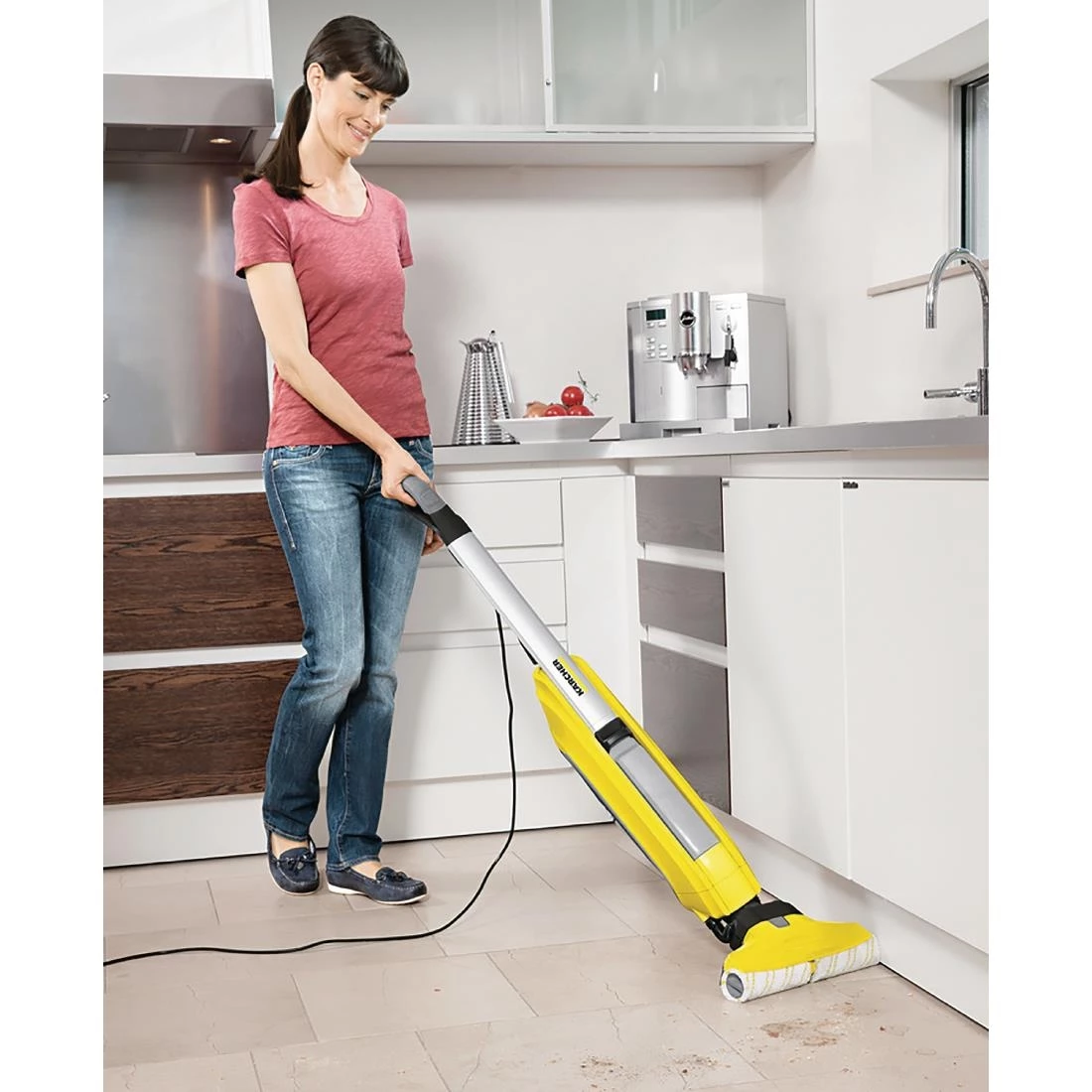 The Karcher FC 5 hard floor cleaner is a fantastic time-saving appliance for cleaning stone, tile, wooden or laminate floors in the home. Incredibly easy to use, the FC 5 combines vacuuming and washing systems to effectively clean floors and leave them with a sparkling finish. Even though the cleaner uses water to wash floors, the clever design ensures floors dry quickly, meaning the floor is ready to use again much faster than traditional mopping. Whether you’re clearing up a kitchen, conservatory, hard floor hallway or porch, the Karcher makes the job fast and easy.