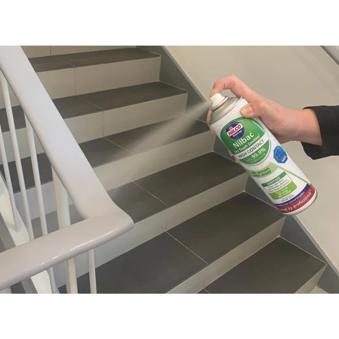 Kill 99.9% of bacteria on your most-touched surfaces by applying this spray sanitiser from Nilco. The advanced formulation is designed especially for use on high contact areas such as doors, handles, hand rails and buttons as well as on furniture such as desks and chairs.