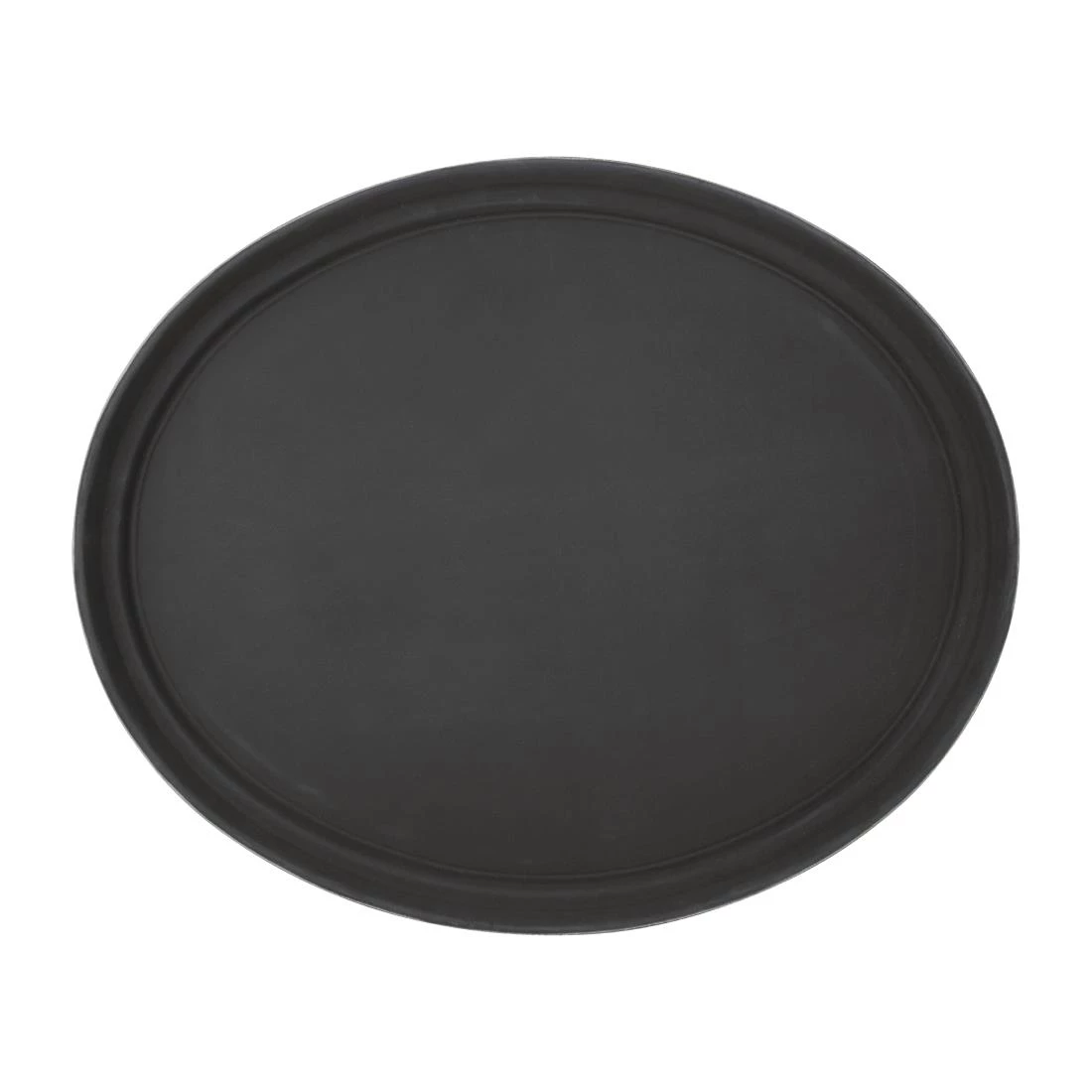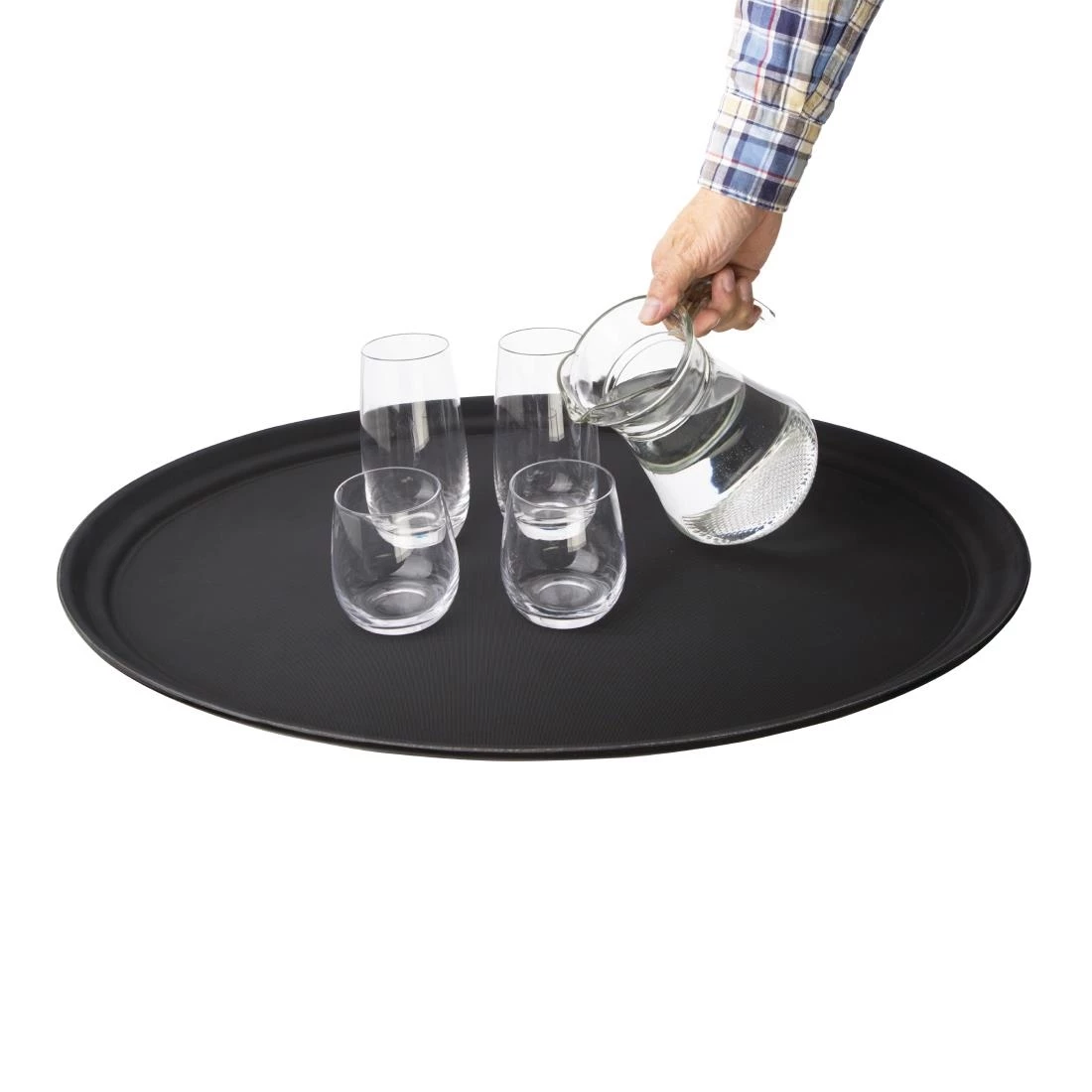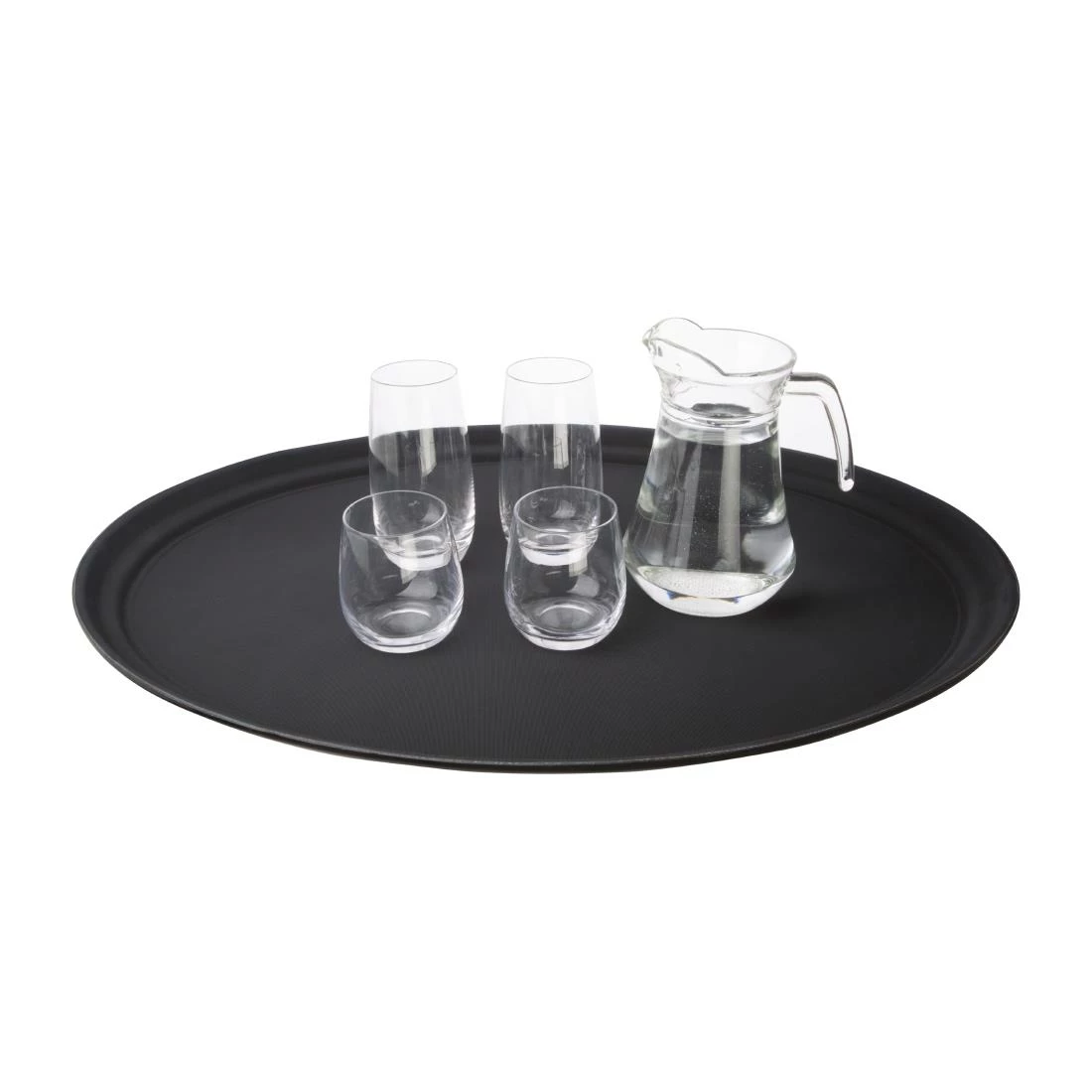 Reduce the risk of spills and drops during service with the Kristallon oval tray from Olympia. The non-slip surface keeps a firm grip of your glasses and crockery – ensuring stable and safe carrying.