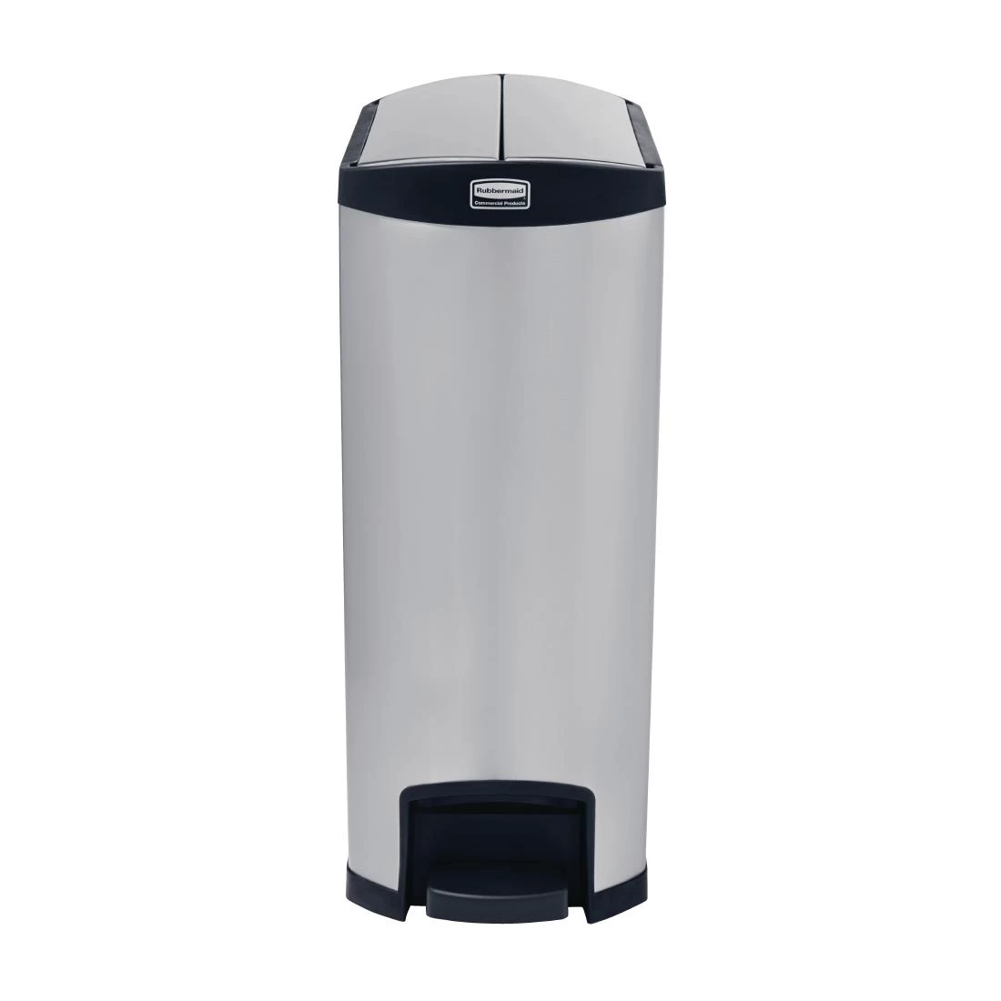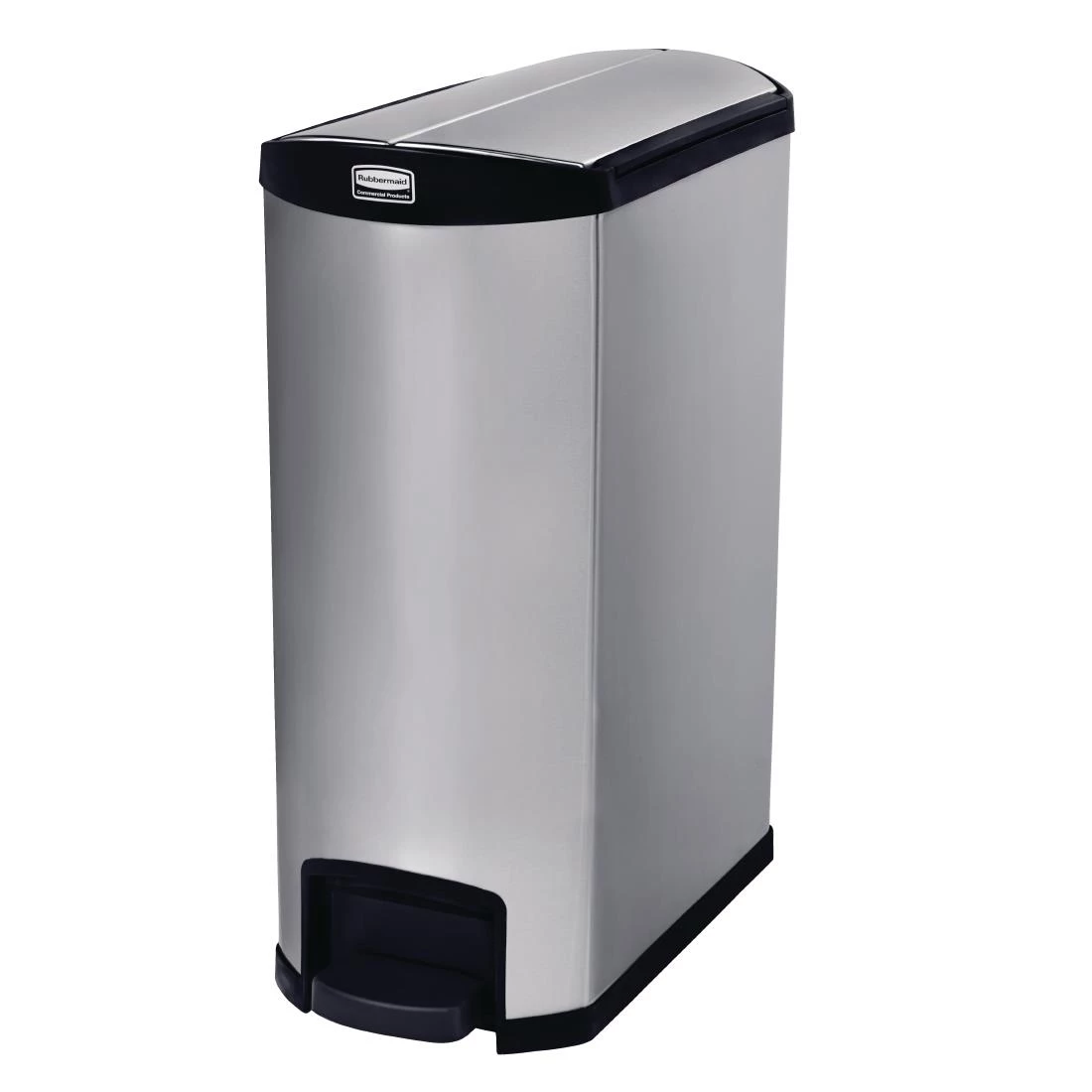 Featuring a large 90 litre capacity, this stainless steel pedal bin from Rubbermaid is perfect for commercial waste disposal in kitchens and food preparation areas, with a foot operated lid that helps keep hands free from dirt and germs. The pedal lid closes quietly and tightly to reduce sound and lock in bad smells, helping you to maintain a pleasant environment for staff and customers. The small footprint of the Slim Jim bins means they can fit into small spaces and be discreetly placed to save space.