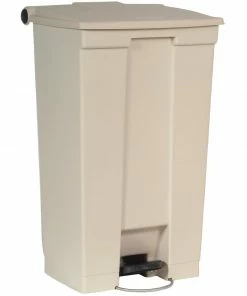 Add reliable and practical waste disposal facilities to your kitchen with the Rubbermaid Beige Step On Container. This tough and hard wearing container is made from puncture resistant polyethylene that will not dent, chip or peel, suitable for use in busy kitchens. With hygiene in mind, the Rubbermaid container has round edges and smooth contours, as well as a pedal operated lid that allows for hands free waste disposal.
