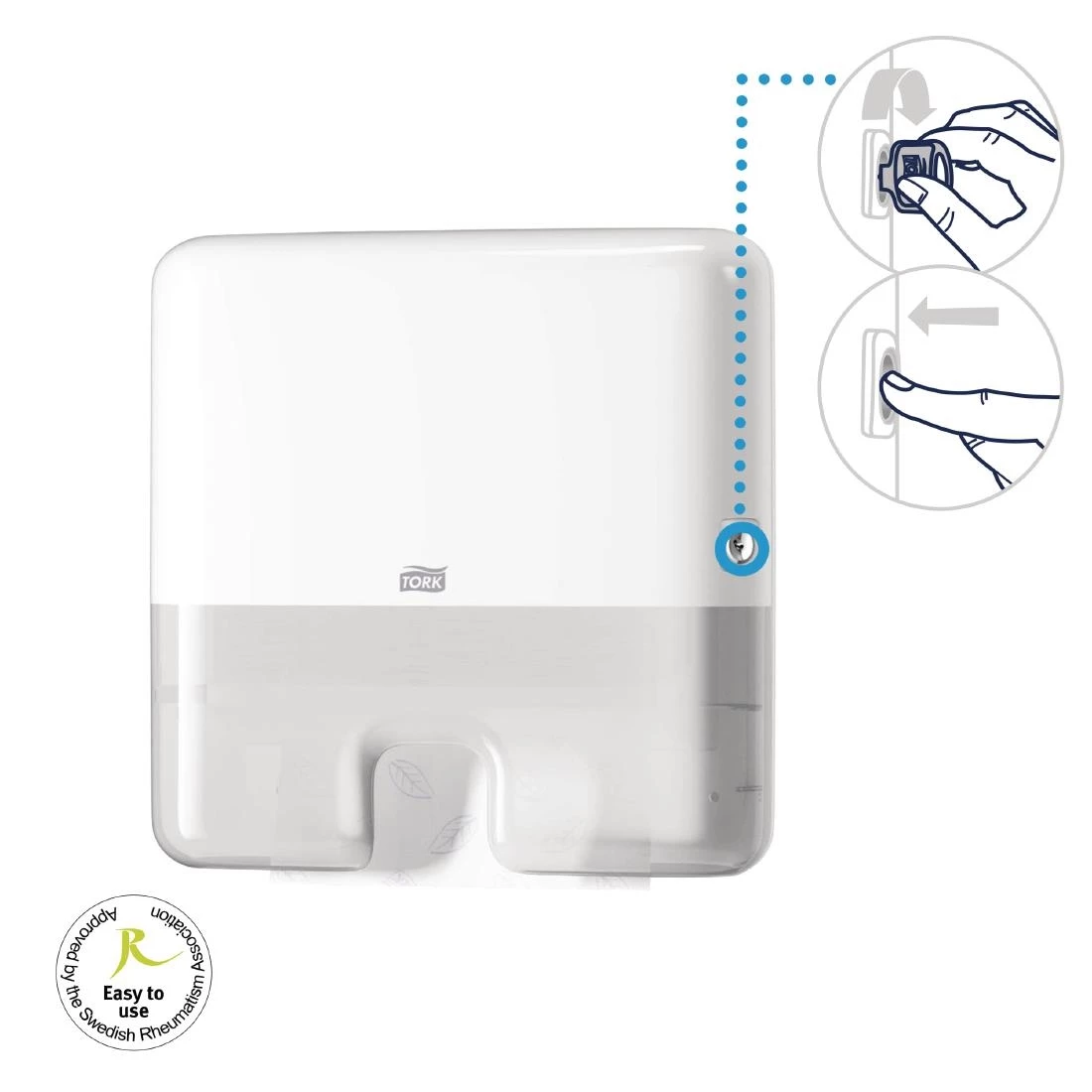 Make the most of your space with this mini wall mounted Tork Xpress dispenser. The dispenser only protrudes from the wall by 11cm and, as the refill door opens sideways, it can be placed under a shelf or cabinet. The dispenser is easy to clean and sanitise and has two refill modes – secure or free access. These can be changed using the key. When refilling, the dispenser will accept H2 universal Z-fold hand towels (DL931) and can hold 1.5packs.